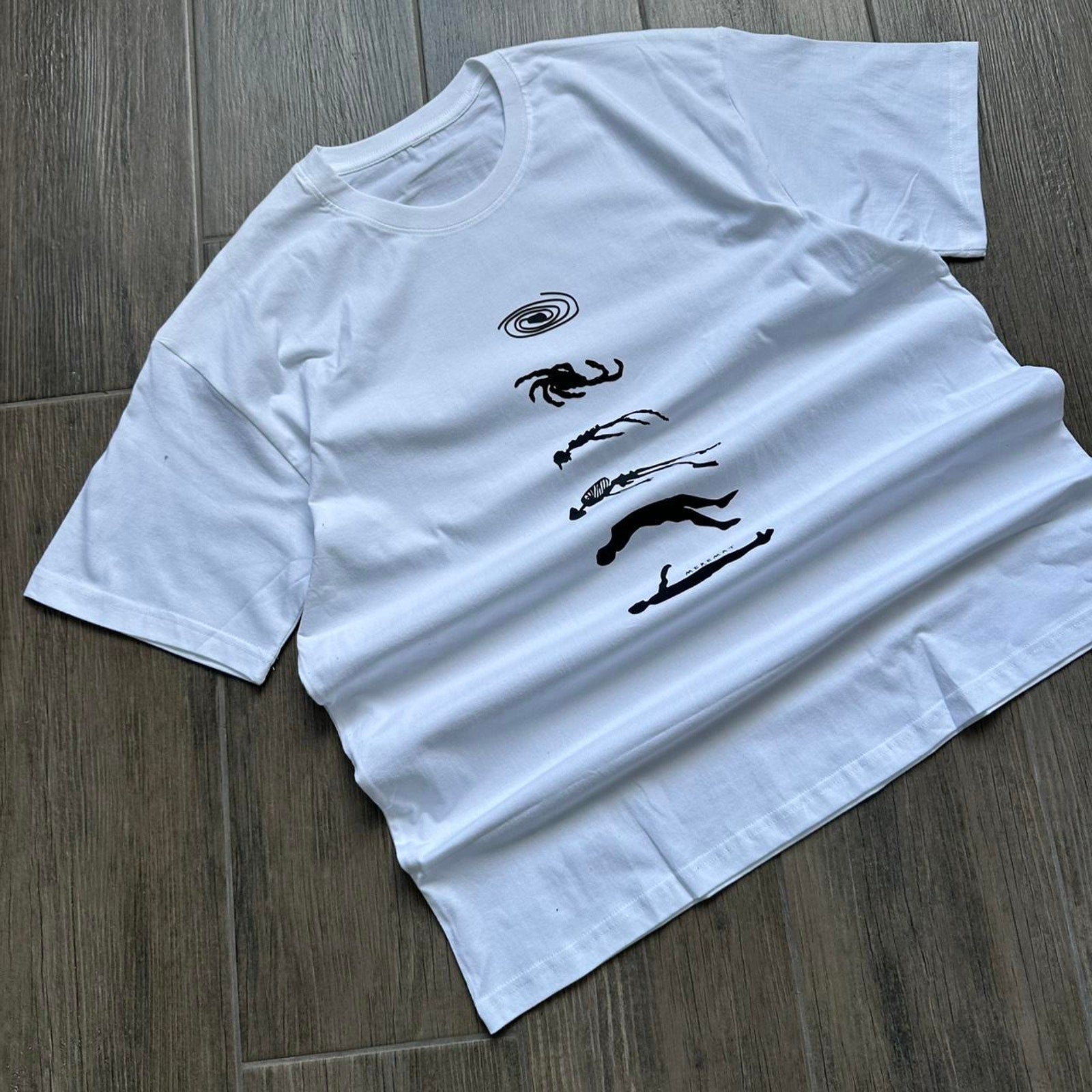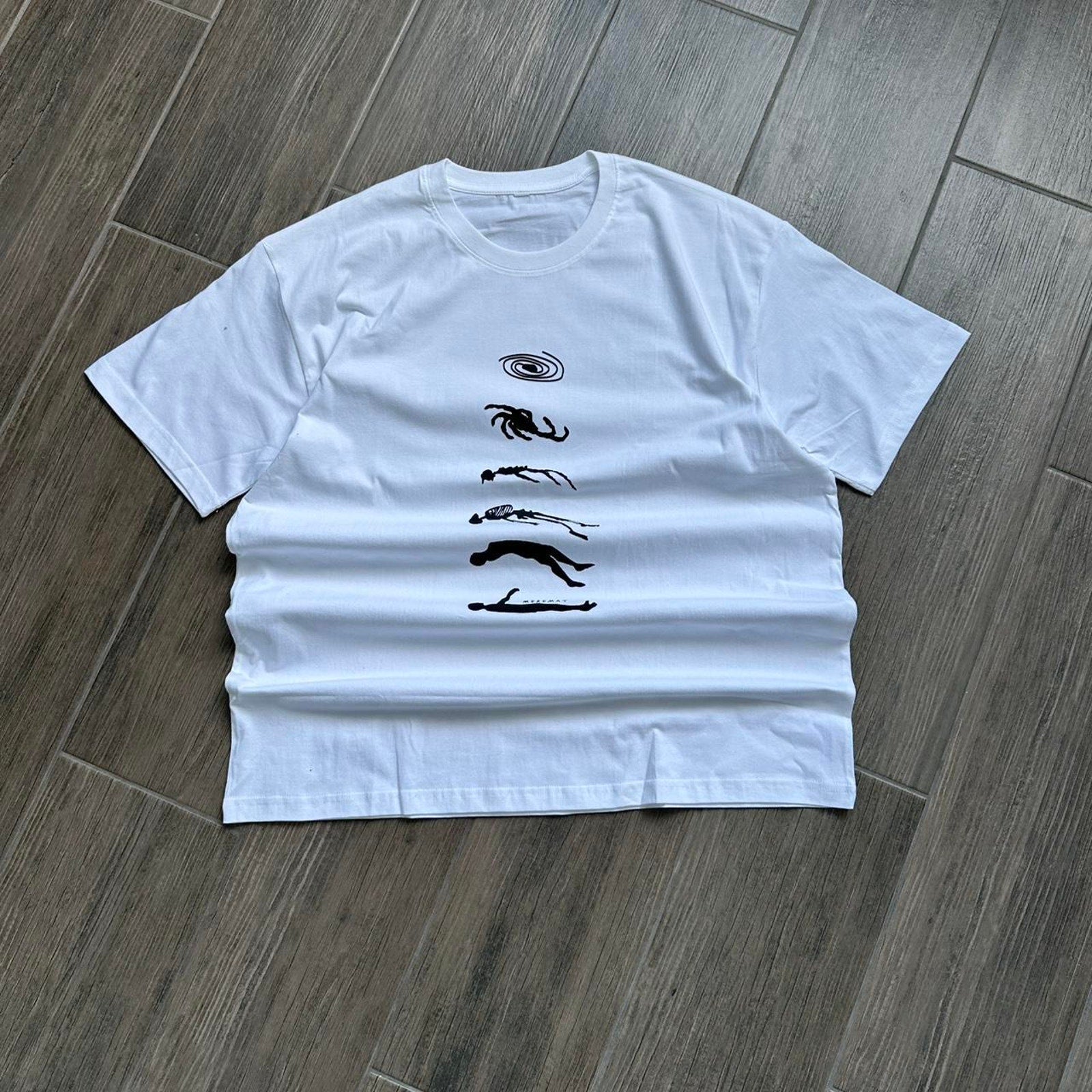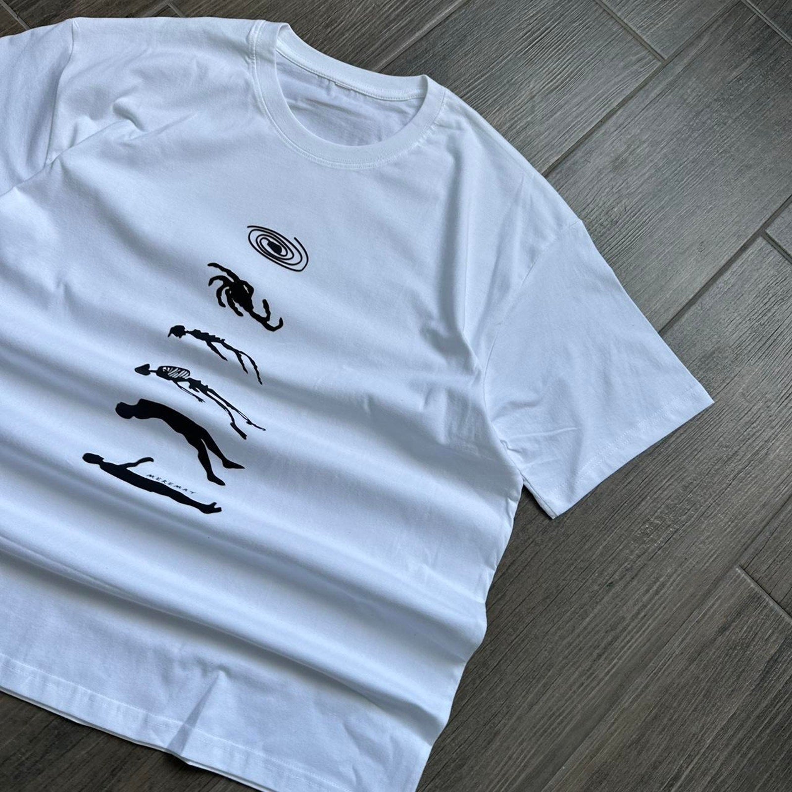 Human to Universe evolution graphic tee skeleton surreal y2k style