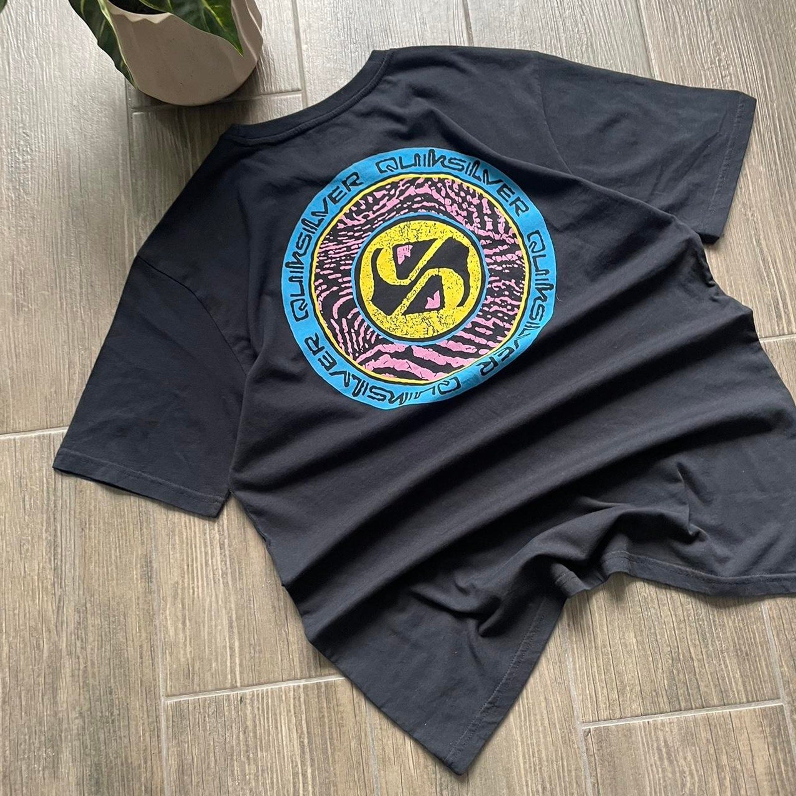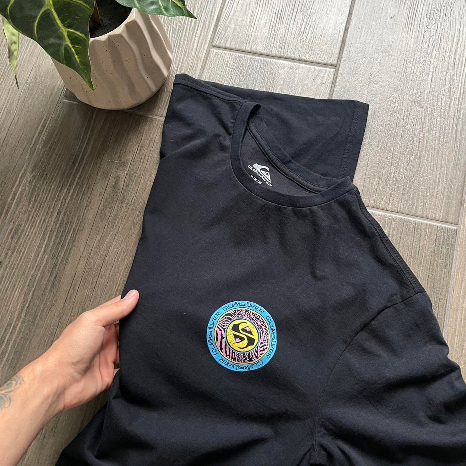 Quiksilver black big logo surf cotton t-shirt M